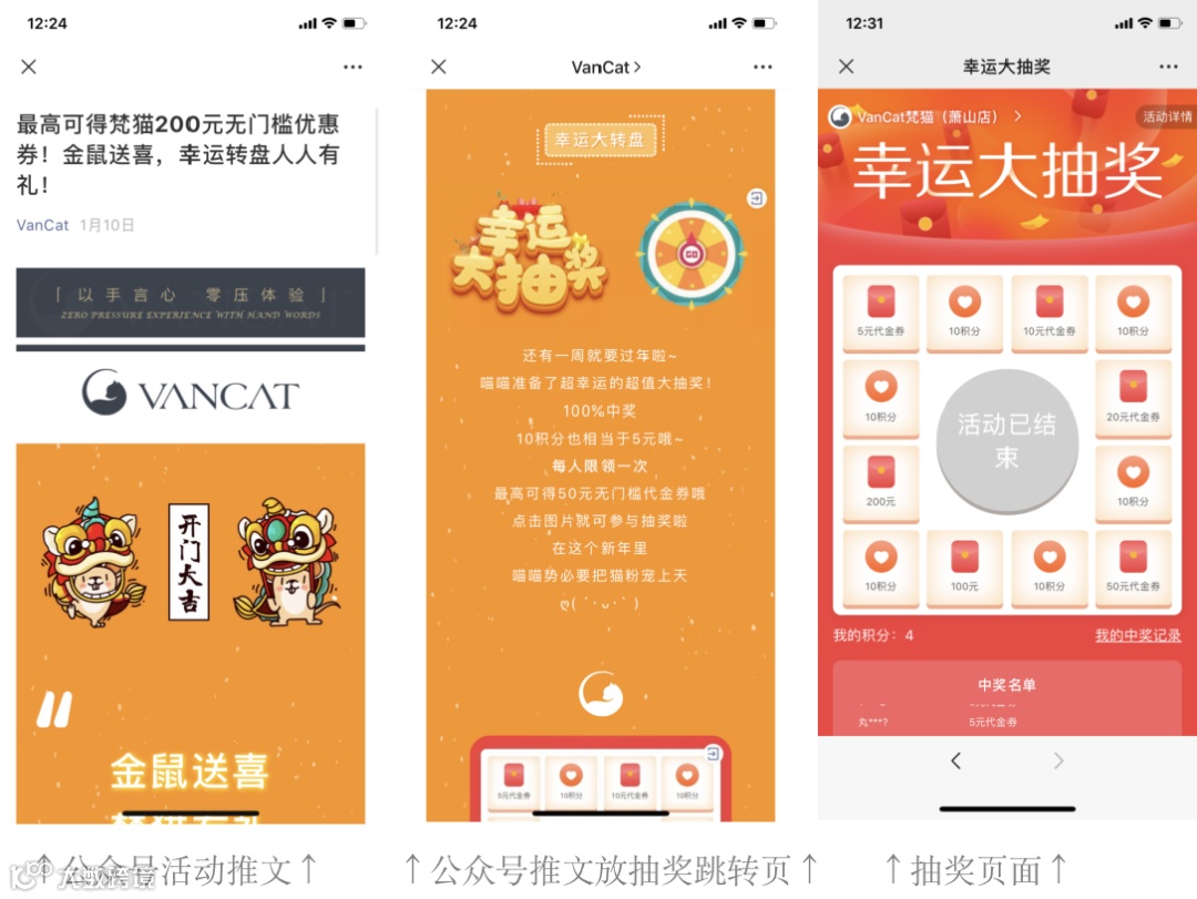 抽奖方式:引导关注公众号后,赚积分进行抽奖