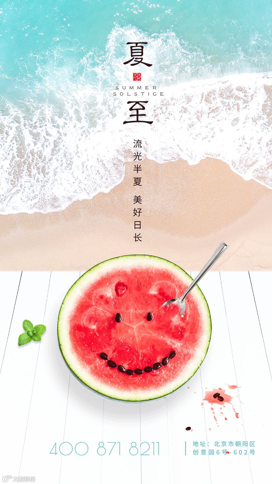 ③将产品与夏日元素相融合,如阳光、风铃等,围绕产品进行创意表现。