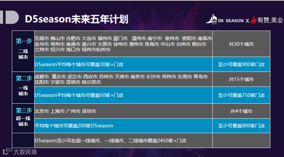 在成本方面,D5季房租、装修以及人力成本都低于同行业水平,要求三四线房租一年不超过20万,每家门店省去店长的职位,专门做运营工作,这样既能把人力成本降低,又能把门店的营销成本降低。