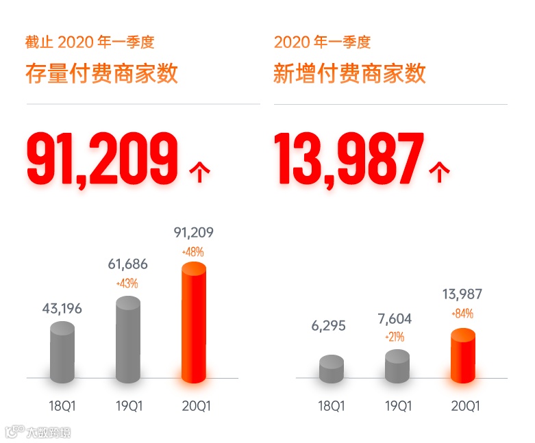 在 2020 年第一季度,有赞的付费商家数量达 91209 家,同比增长 48%,三个月内新签商家达 13987 个。在这三个月里,有赞团队真实见证了来自传统品牌商、零售商的恐慌和焦虑。