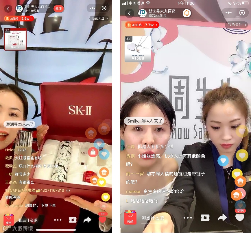 王府井百货、文峰集团、新世界大丸百货的柜哥柜姐们,摇身一变成为了带货主播。在爱逛直播间,新世界大丸百货的主播穿梭在商场各个品牌、专柜之间,与柜哥、柜姐们密切互动,全方位展示和介绍产品,创造了「云逛街」体验。在 38 女生节一场6小时的直播中,就达成了 188 万的业绩。