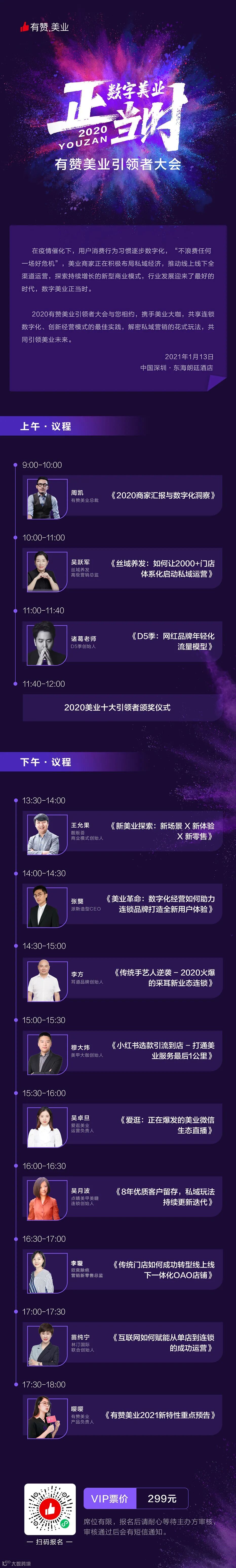 大会现场,有赞美业总裁周凯,将独家披露2020年美业商家在业绩管理、营销方式、会员系统、经营管理等多个维度的数据,借助数据洞察2020年美业商家数字化的进程。
