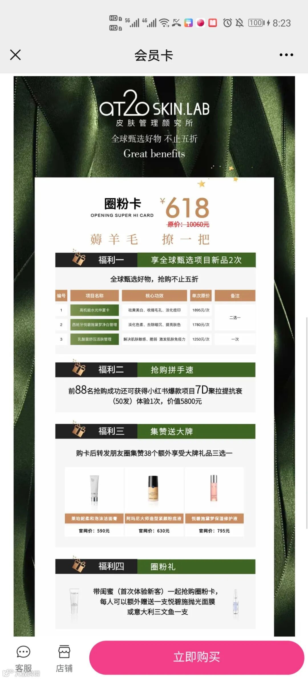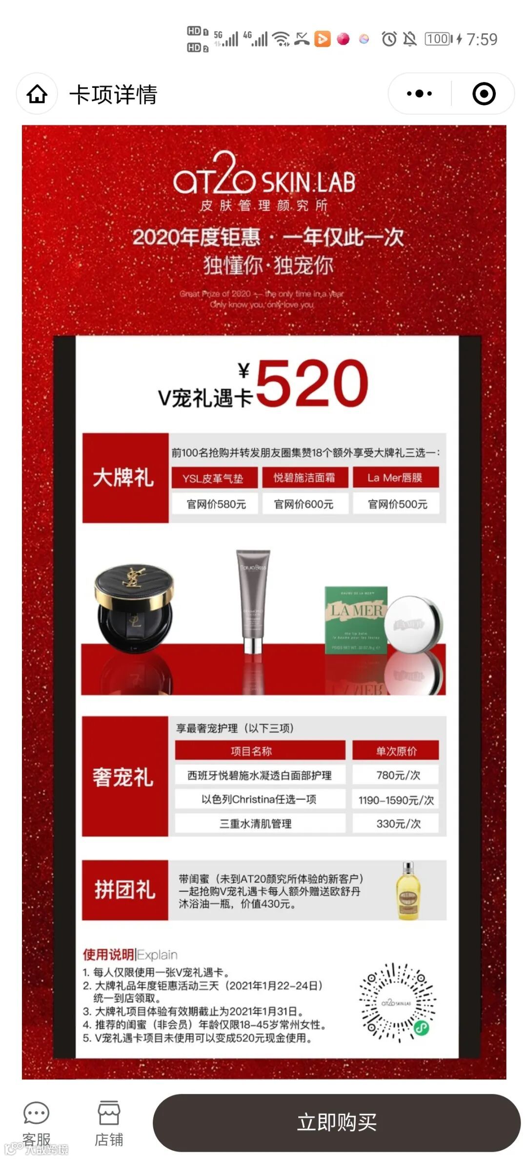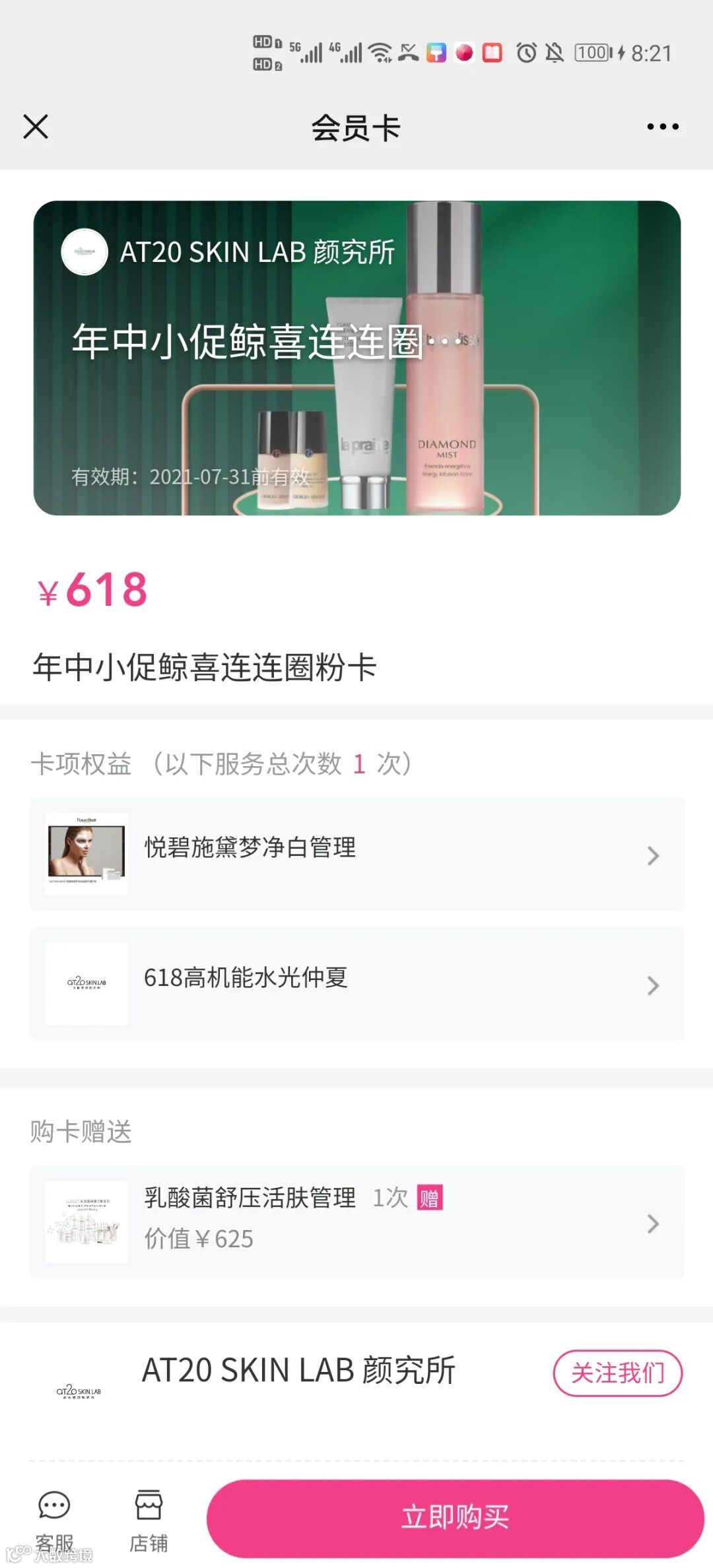 AT20 SKIN LAB 颜究所自去年合作有赞美业以来,玩转了线上卡项设置。