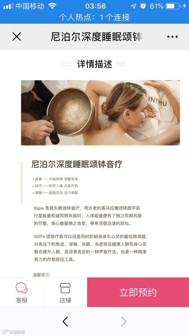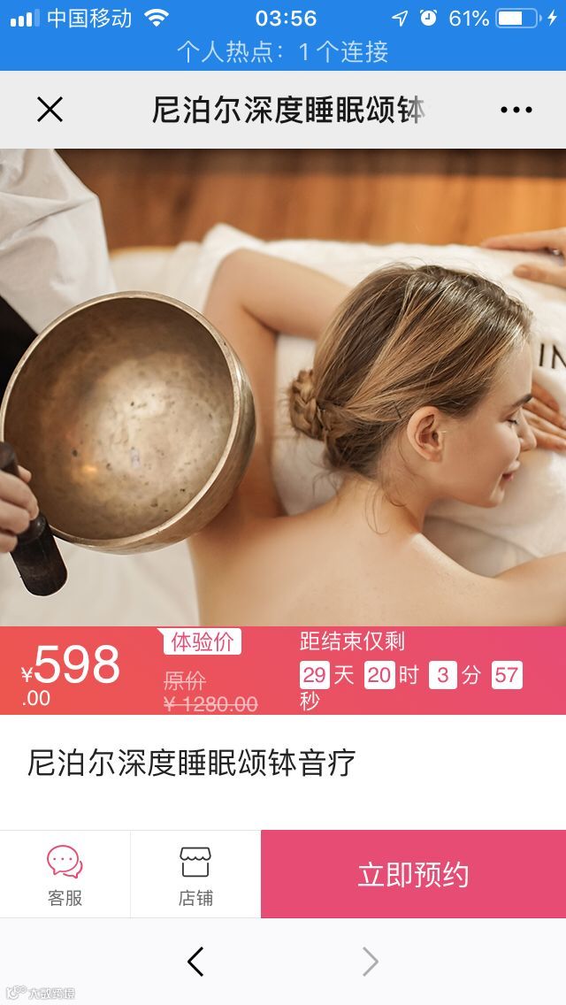 2. 体验价²。针对客单价高的服务项目,以近 5 折的体验作为噱头,刺激新客在线上快速下单,后续到店完成服务。如:针对「尼泊尔深度睡眠颂钵音疗」开展为期 1 个月的体验价活动,借助长时间的优惠,尽可能覆盖周边有需求的所有潜在客户。