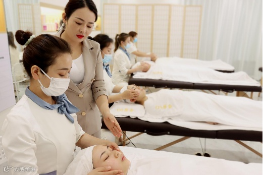 选址:直营店在广州和杭州,即互联网渗透率高的核心城市。加盟店少数在二线城市,多数在三四线城市,虽然互联网渗透率相对更低,但因为竞争相对小,更容易成为当地网红店。在此基础上,商业中心、社区底商、写字楼,都可选址。 面积:100-150平。 租金:每月2万左右是上限,个别城市仅需7~8千。 床位:6-7个。 人员架构:店长1人,美容师6-7人。 品项架构:一共12个项目,洗头2个(基础洗头、碳酸泉洗头),脸6个(美白、抗衰、提升、清洁),身体4个(疗愈放松、按摩为主)。 定价:洗发88元和168元,其余项目300~500元。 卡项:次卡、储值卡。