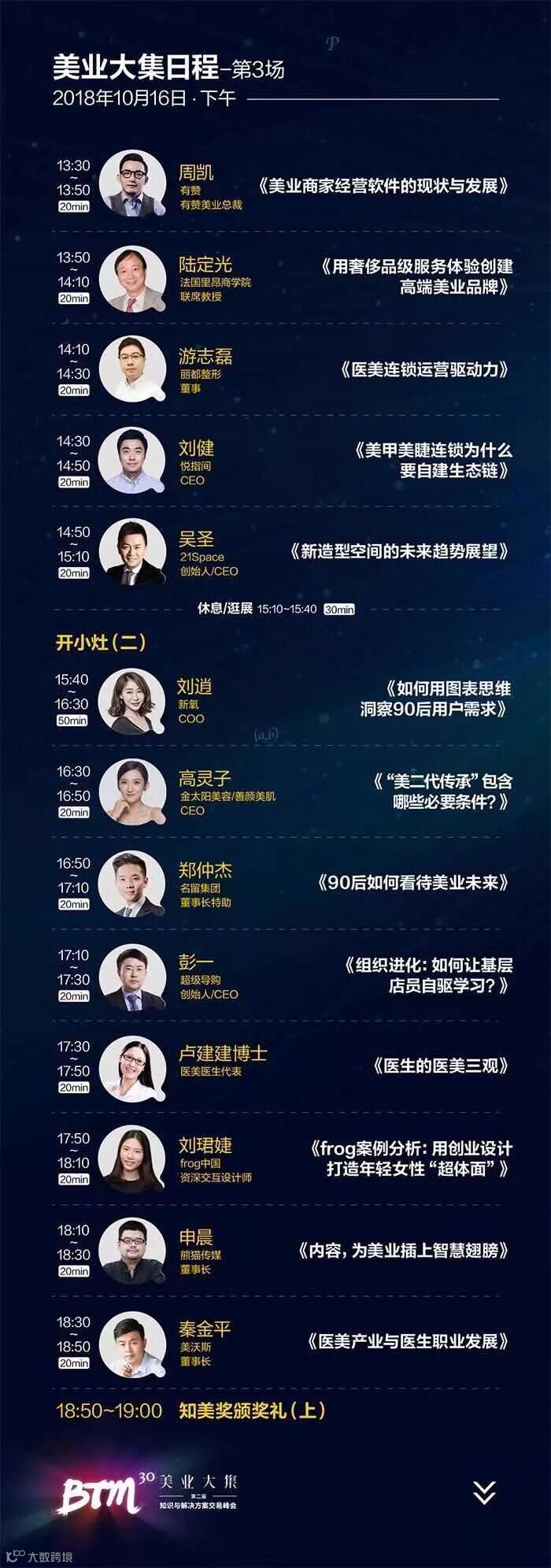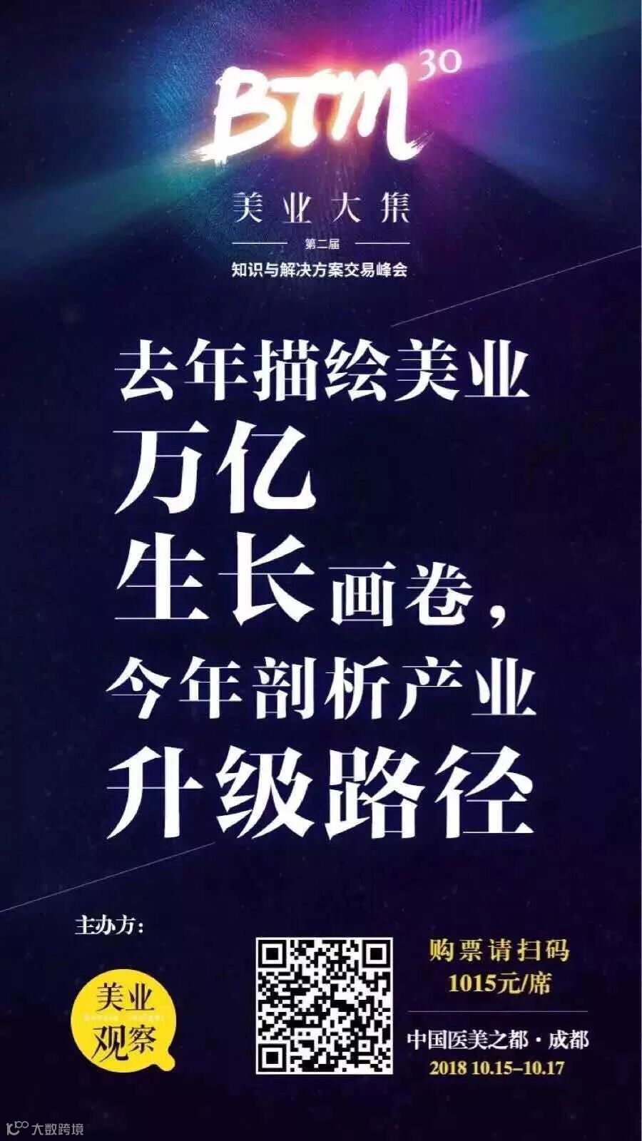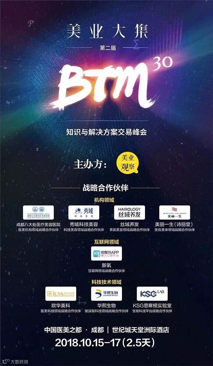 2018年10月15--17日,由《美业观察》主办的2018年美业大集BTM30-年度美业峰会将在成都举行,据悉,这场峰会聚集了80%年度最佳企业创新实践领军&黑马,50位最具代表性的“做的好又讲得好”的优秀演讲嘉宾,将倾情奉献100%干货与上千位美业学霸专业观众一起,寻根溯源,高强度认知碰撞,剖析产业升级路径,共同探索美业未来。