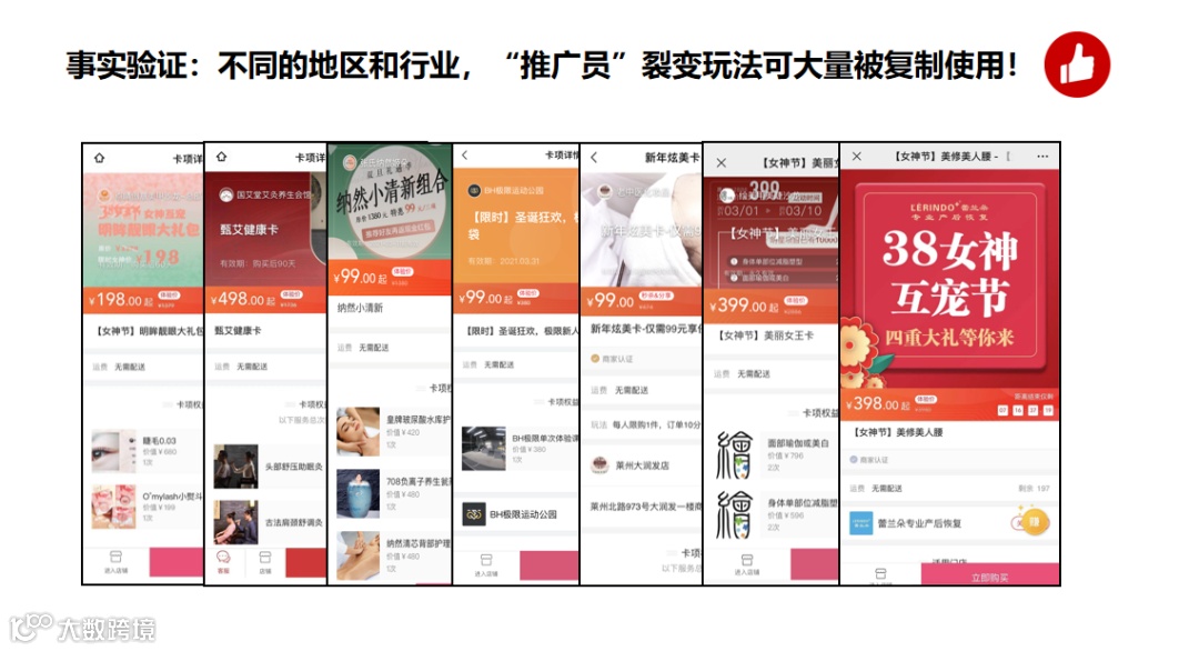今天给大家分享下,本次女神节创造营有哪些精彩的营销案例,以及别人家是如何利用“体验价+推广员”的裂变方式来做好女神节营销抢客大战!