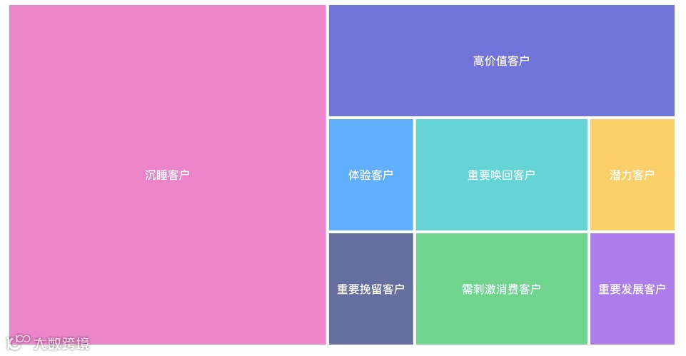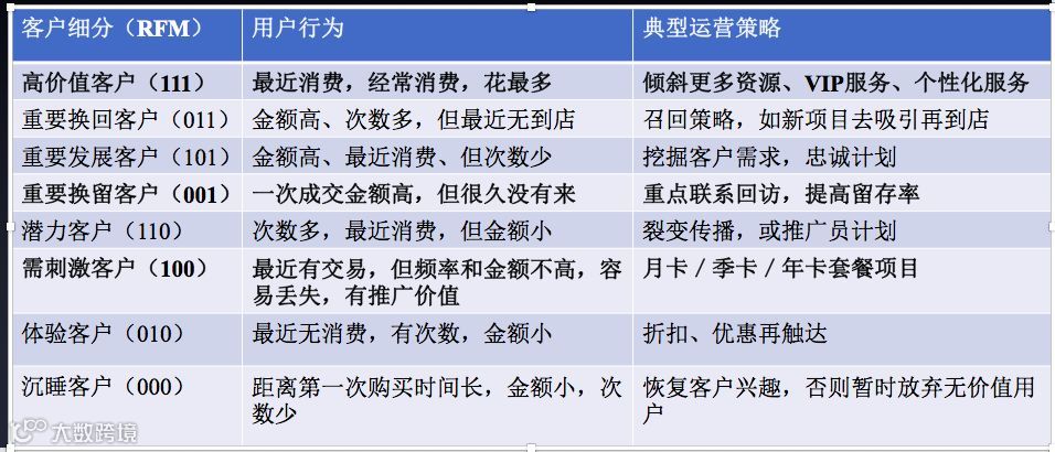 这个三个重要纬度的不同组合,又能够衍生出8大类细分客群,在电商行业中为运营提供数据运营的决策。