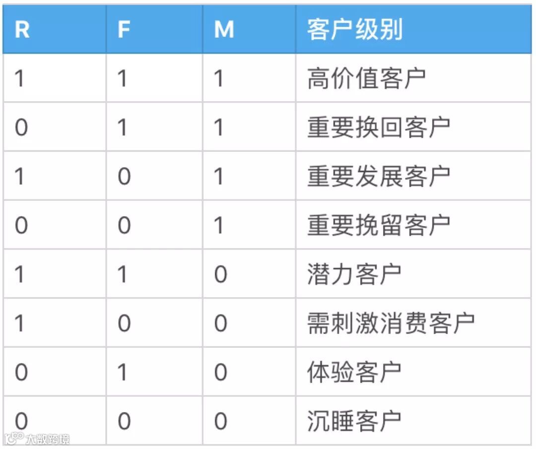 ↑RFM划分规则图↑