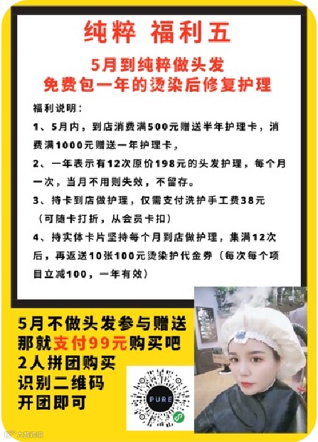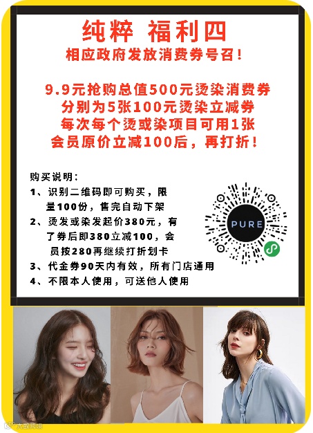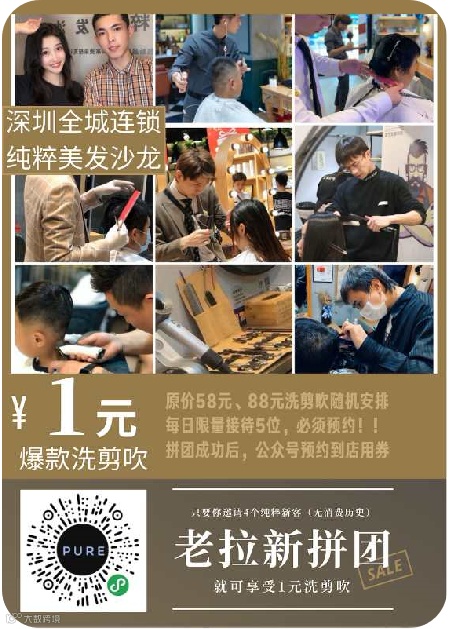 拼团选品:300烫染代金券/99元剪发造型/1元洗剪吹
