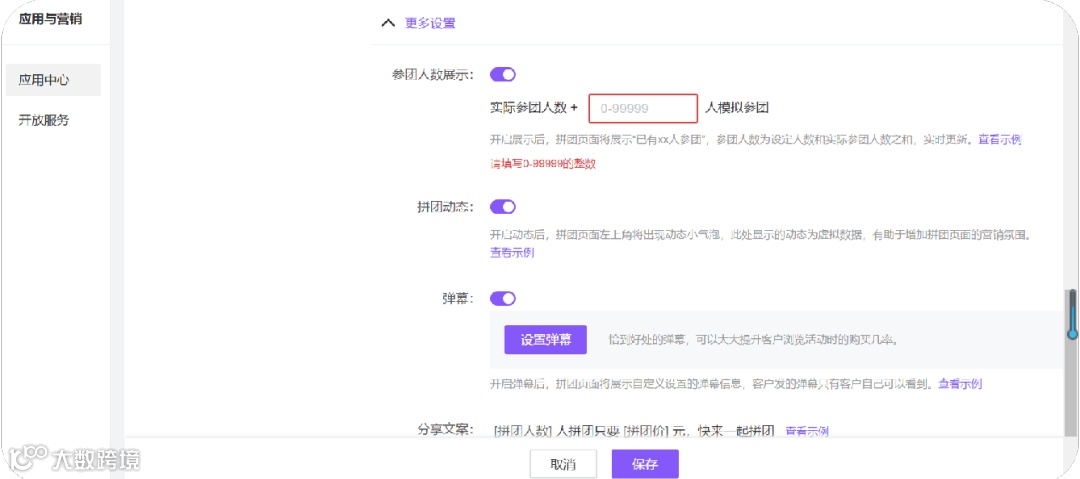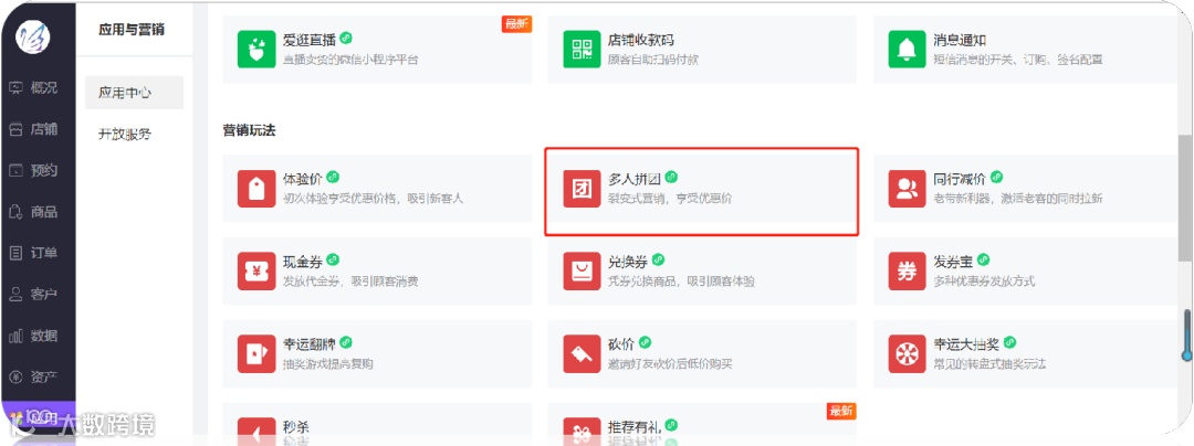 美业电脑端后台 – 应用- 应用中心 - 营销玩法– 多人拼团