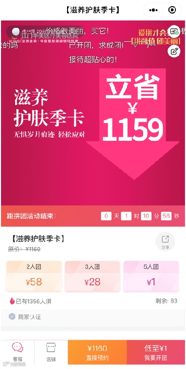 这种玩法通常用于老带新拼团。通过老客的宣传,可以拉动从未进行消费的新客。可以设置闺蜜同行,共享半价,这种方式的价值在于既能带动老客的活跃,又能最低成本拓客,促进产品销售。