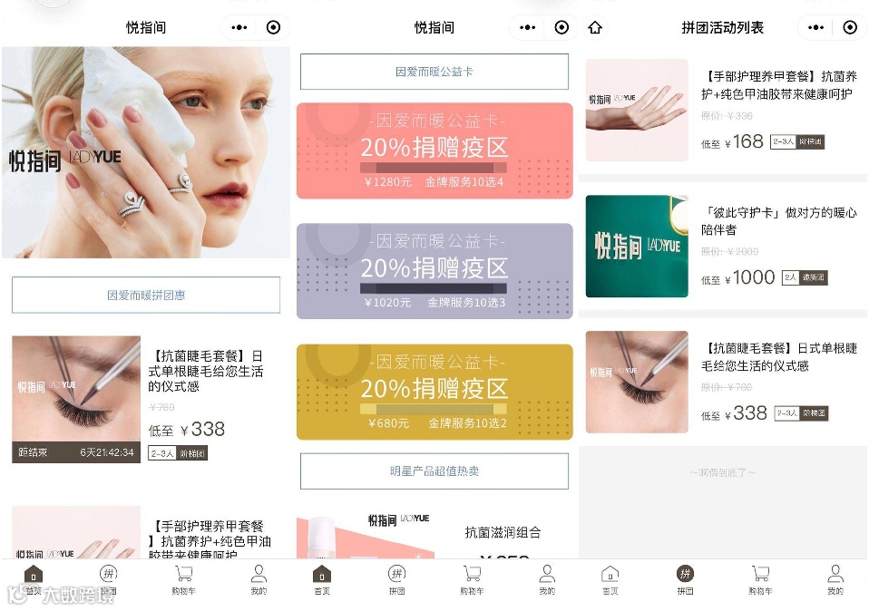 拼团选品:日式美睫、手部护理养甲套餐、门店充值卡