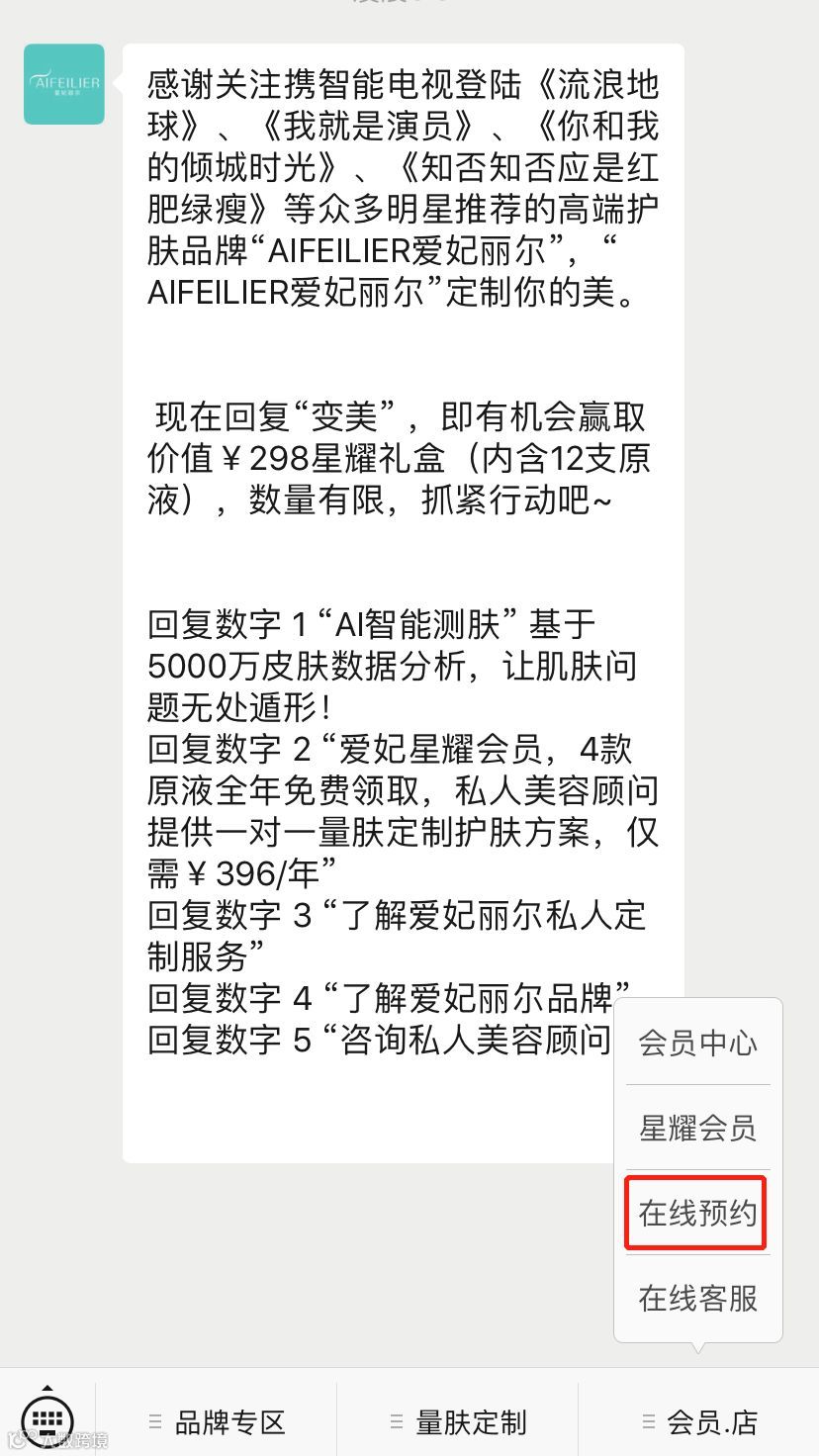 △ 爱妃丽尔小程序&菜单栏预约入口