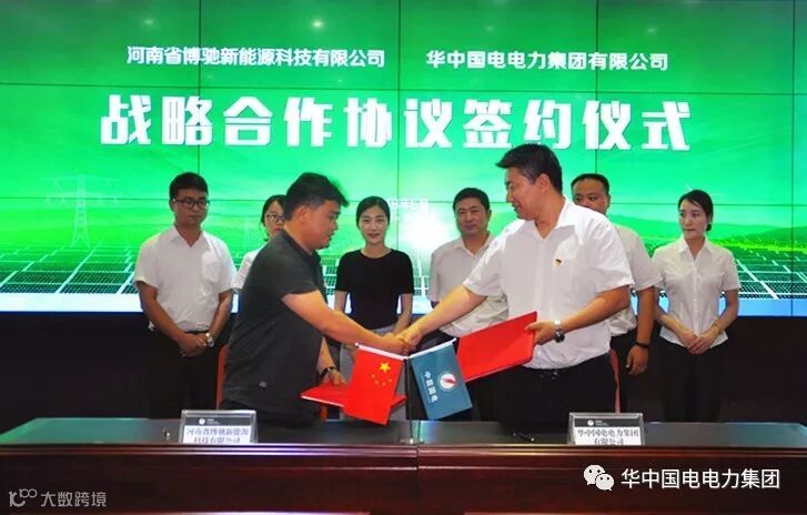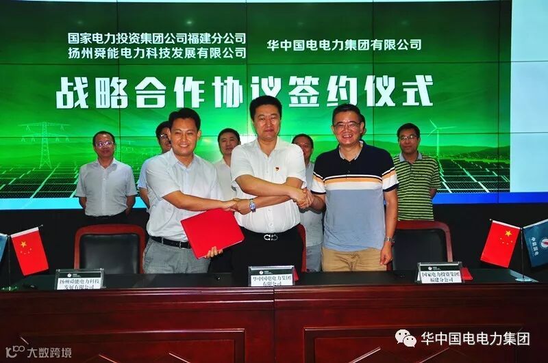 6月26日,在华中国电集团总部数据中心,集团公司与国家电力投资集团公司福建分公司和扬州舜能电力科技发展有限公司签订三方战略合作协议。同时,集团公司与河南省博驰新能源科技有限公司签订战略合作协议。国家电力投资集团公司福建分公司项目开发总经理俞君明,扬州舜能电力科技发展有限公司总经理任俊,河南省博驰新能源科技有限公司总经理王俊辉,集团公司总经理王岩、集团监事会主席邢庆宽、新能源事业部总经理董平涛等有关人员等参加签字仪式。