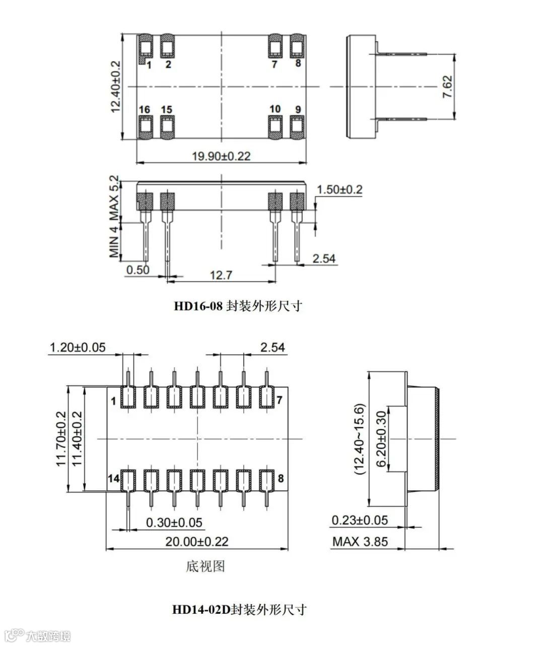 HJISO124A采用HD14-02D型陶瓷表贴外壳(选型HJISO124ADW)外形尺寸图2;