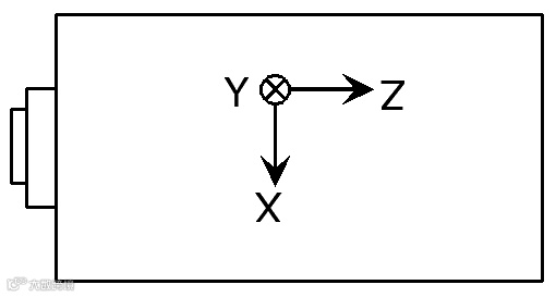 2.模块三个正交轴的指向见下图(顶视图)。