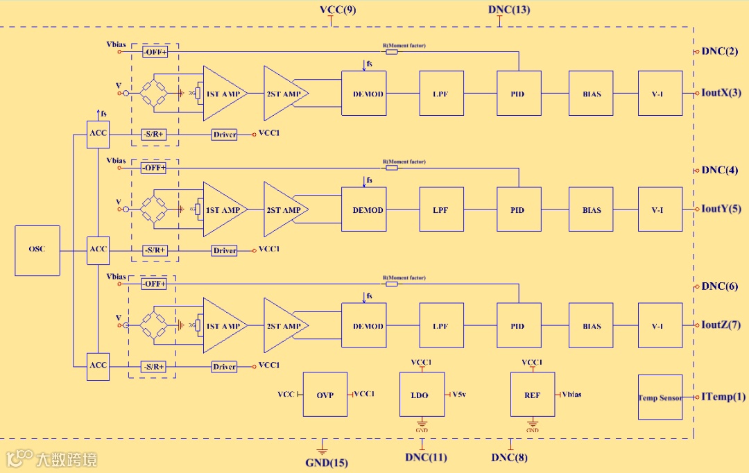 HJMAG803C是一款电流输出型三轴高精度弱磁测量模块。该模块采用了调制解调技术和PID调节技术,使得磁传感器探头一直工作在零高斯附近。以此来消除外界强磁场干扰(比如永磁铁、强电磁脉冲等),同时减小零位时漂(dK0/dT)和二次非线性(K2)。为了用户进行温度建模修正、内部嵌入了一个AD590来测量传感器当地温度。