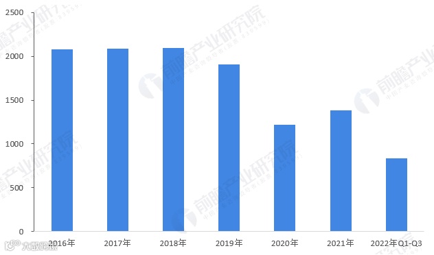 2016-2022年中国上报文旅部的星级酒店营业收入