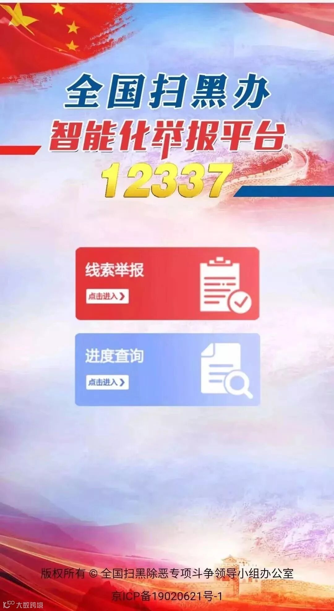 全国扫黑办升级智能化举报平台,搜12337一键举报!