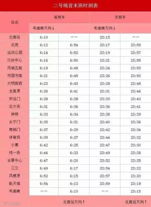 2号线首末班车到站时间:(点击可查看大图)