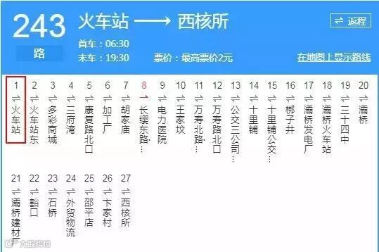 1号线路线:途径站点19站