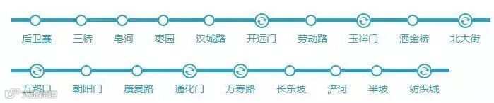 后卫寨—三桥—皂河—枣园—汉城路—开远门—劳动路—玉祥门—洒金桥—北大街—五路口—朝阳门—康复路—通化门—万寿路—长乐坡—浐河—半坡—纺织城