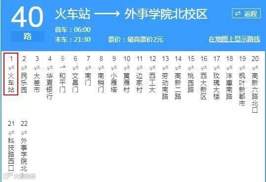 2号线路线:途径站点21站