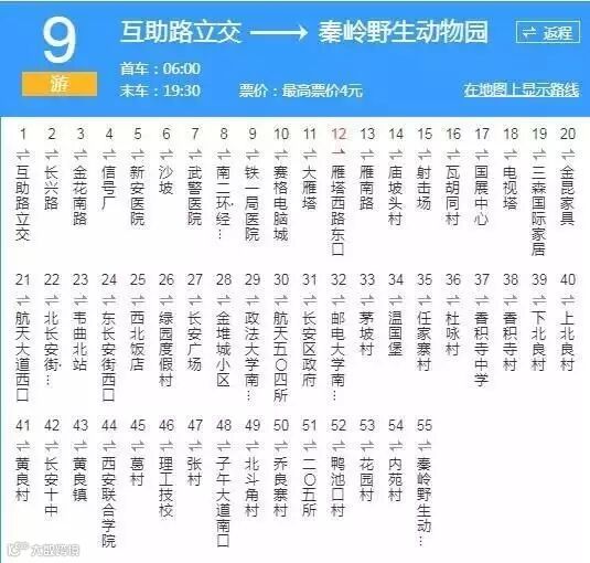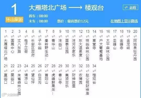 线路:游4路、游5路、游6路、游8路、游9路、西安环山旅游公交1号线、西安环山旅游公交2号线