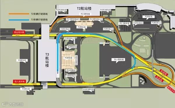 T4航站楼位于现T2航站楼正南方,通过空中连廊与T2、T3南指廊链接;