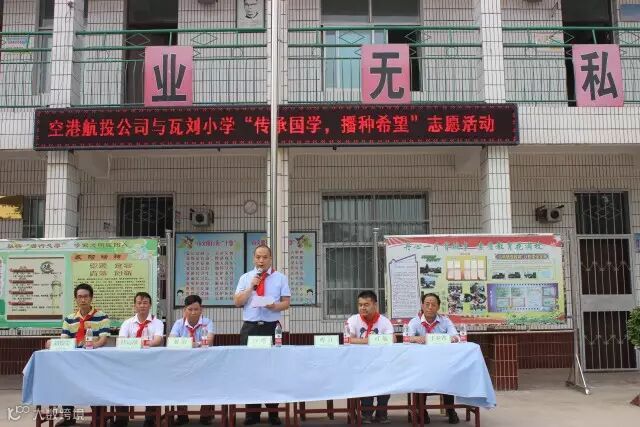 6月14日上午,空港航投公司全体干部员工走进瓦刘小学,给孩子们送去图书及文体用品,为孩子们讲授了趣味小课程,并与他们一起朗诵国学经典,共同践行“传承国学、播种希望”主题活动。