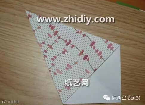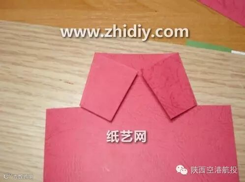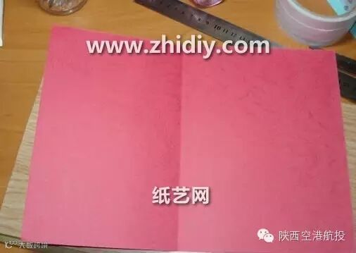 1选择A4的彩色打印纸,将纸张进行如图所示的对折,保证折叠到一起的部分最终展开之后是一个正方形。