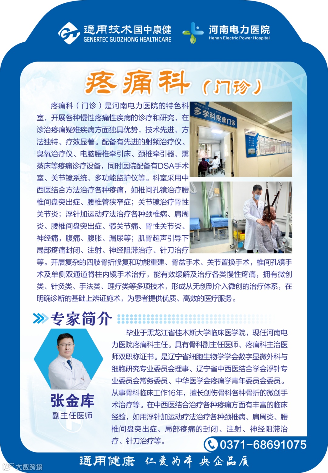 在河南电力医院疼痛科的走廊里