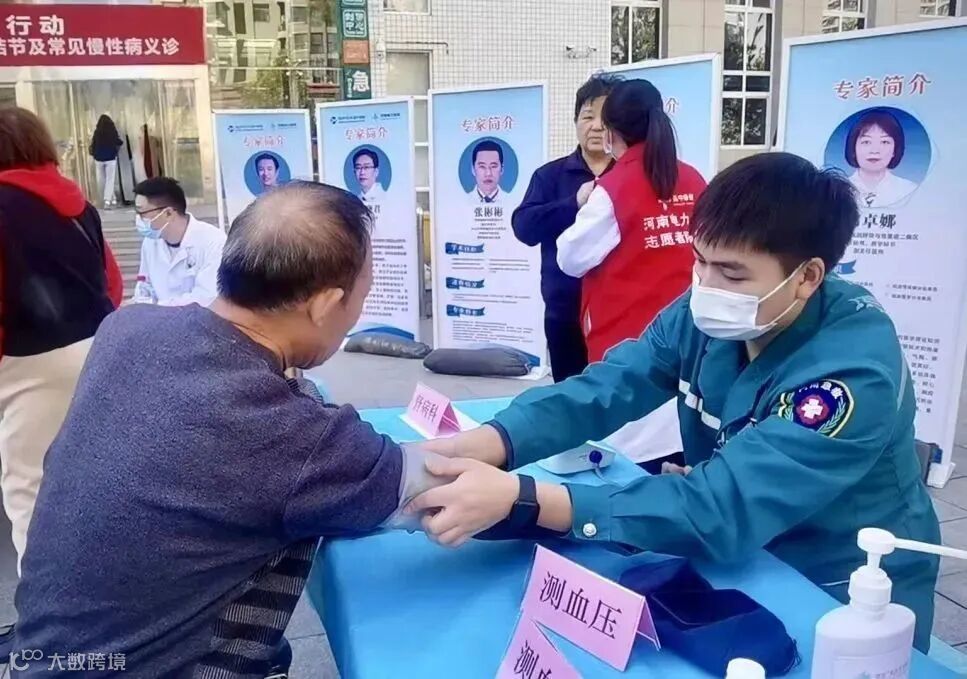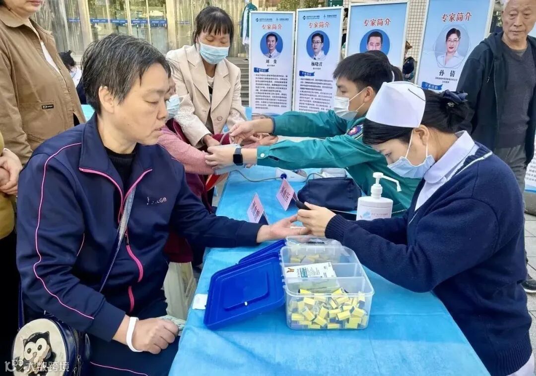 医护人员还免费为前来咨询的患者测血糖、血压。