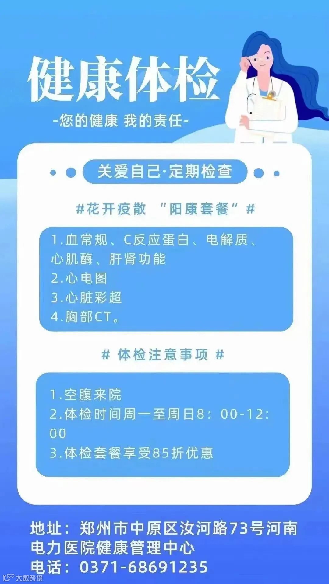 体检预约电话:0371—68691235