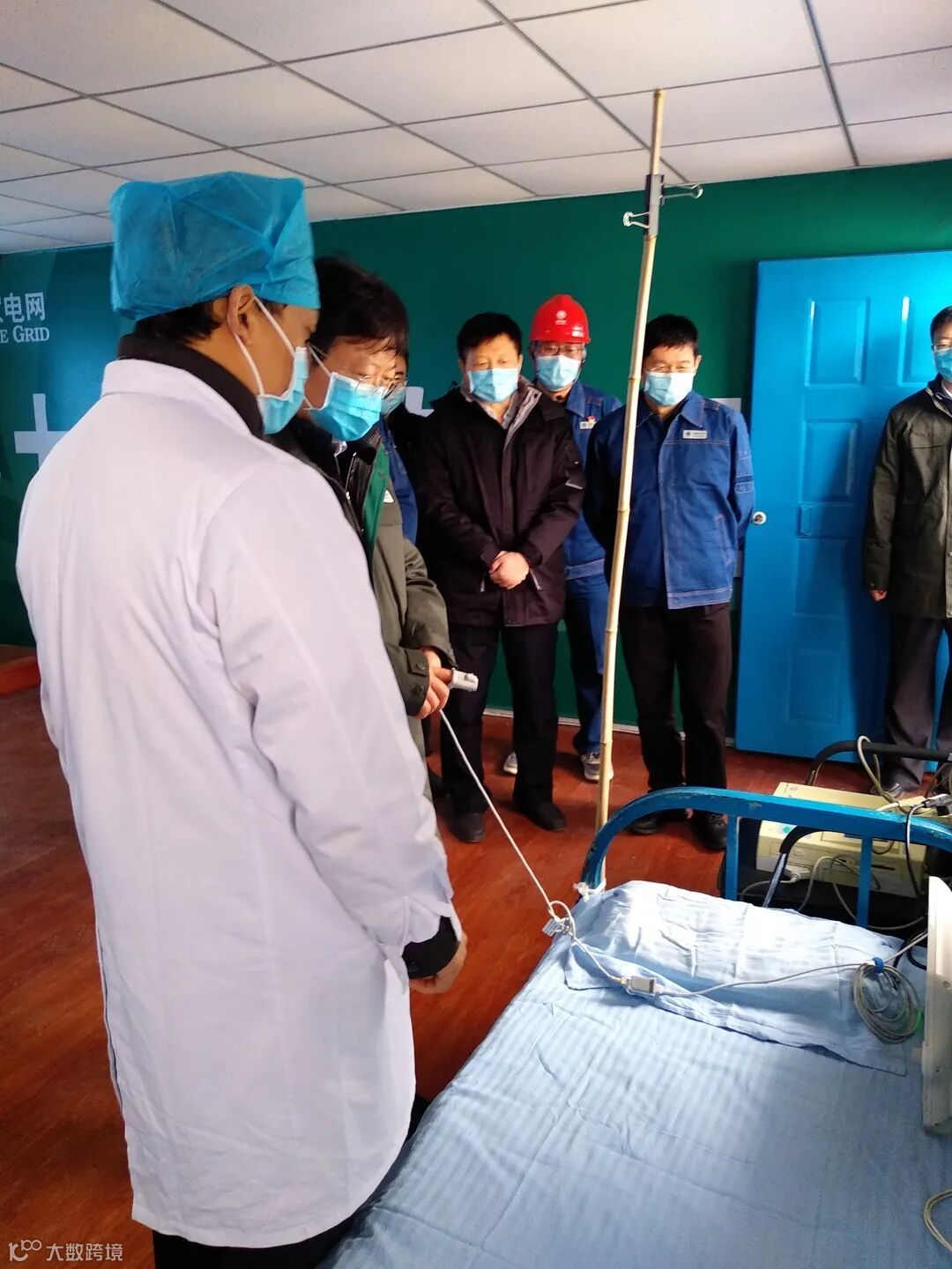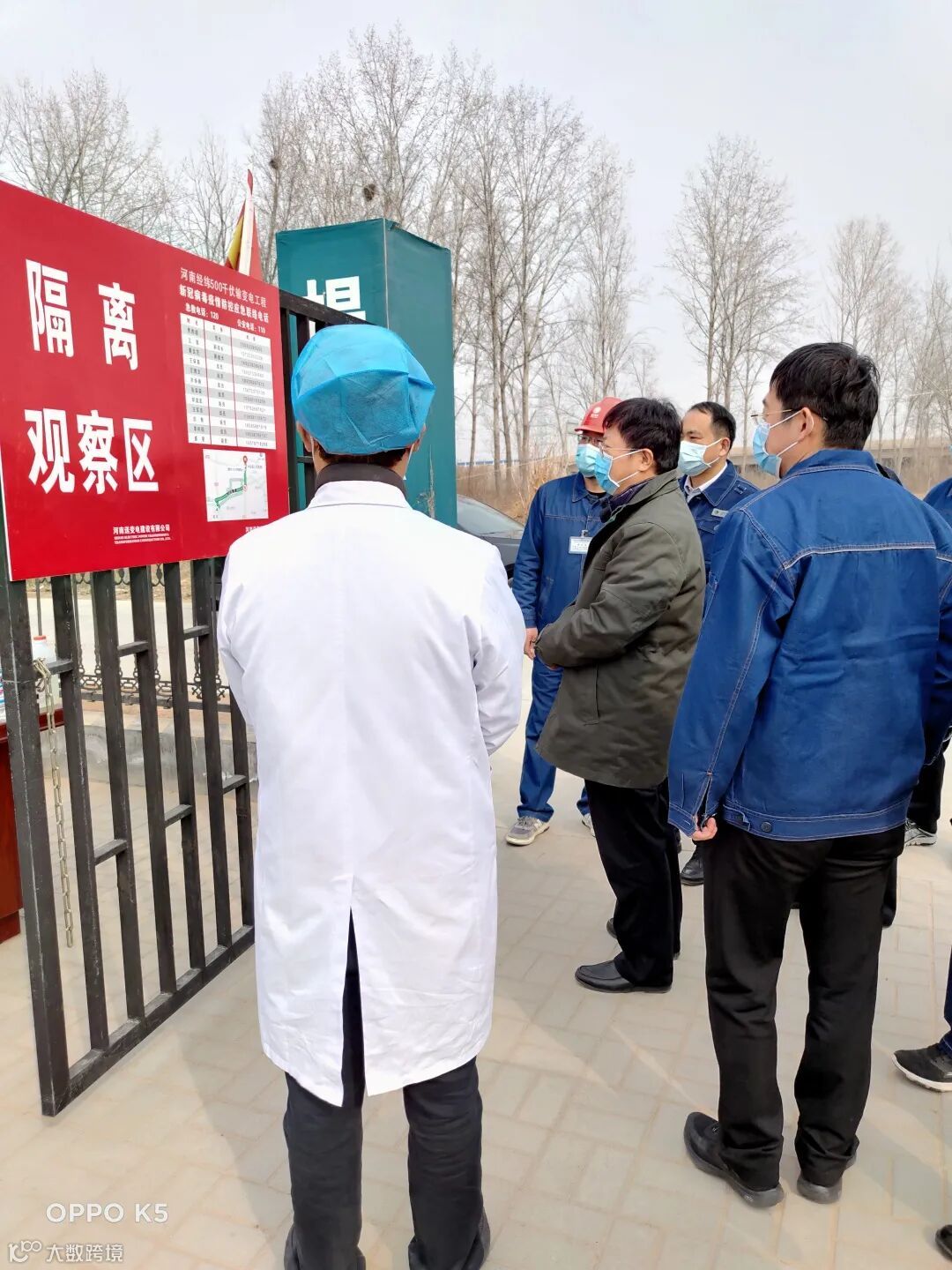 国网河南省电力公司董事长王金行到中牟县河南经纬500千伏变电站前期工程建设工地视察期间,专程来到我院驻工地医疗保障服务点,检查指导疫情防控工作保障情况。