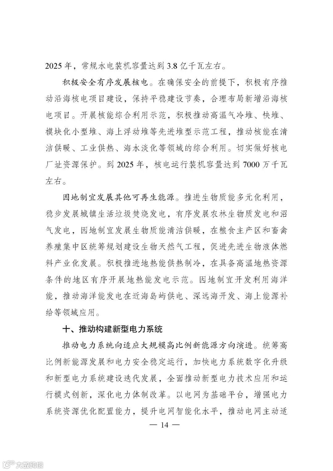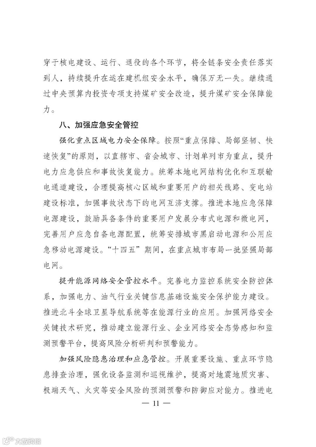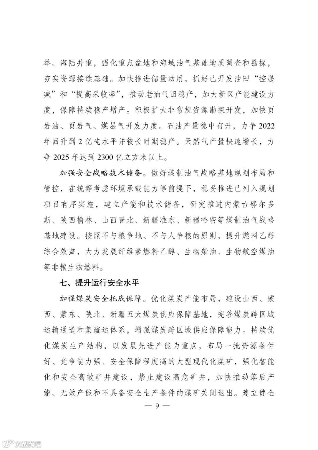 ——能源保障更加安全有力。到2025年,国内能源年综合生产能力达到46亿吨标准煤以上,原油年产量回升并稳定在2亿吨水平,天然气年产量达到2300亿立方米以上,发电装机总容量达到约30亿千瓦,能源储备体系更加完善,能源自主供给能力进一步增强。重点城市、核心区域、重要用户电力应急安全保障能力明显提升。