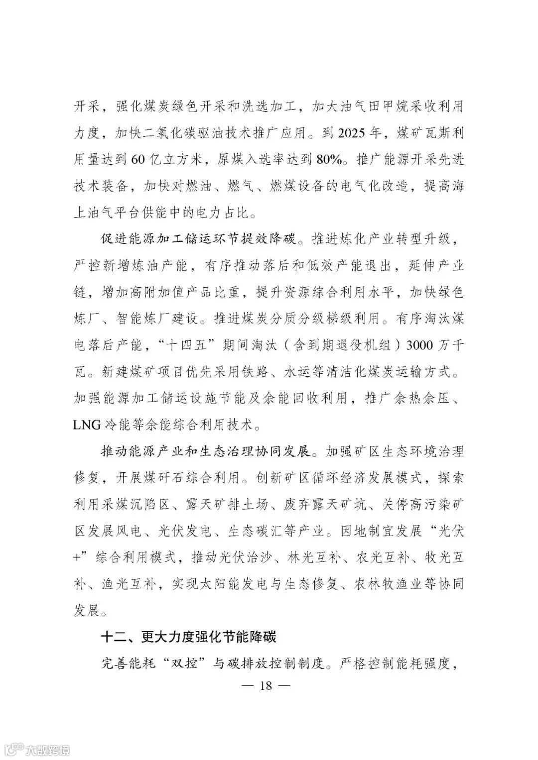 ——能源低碳转型成效显著。单位GDP二氧化碳排放五年累计下降18%。到2025年,非化石能源消费比重提高到20%左右,非化石能源发电量比重达到39%左右,电气化水平持续提升,电能占终端用能比重达到30%左右。