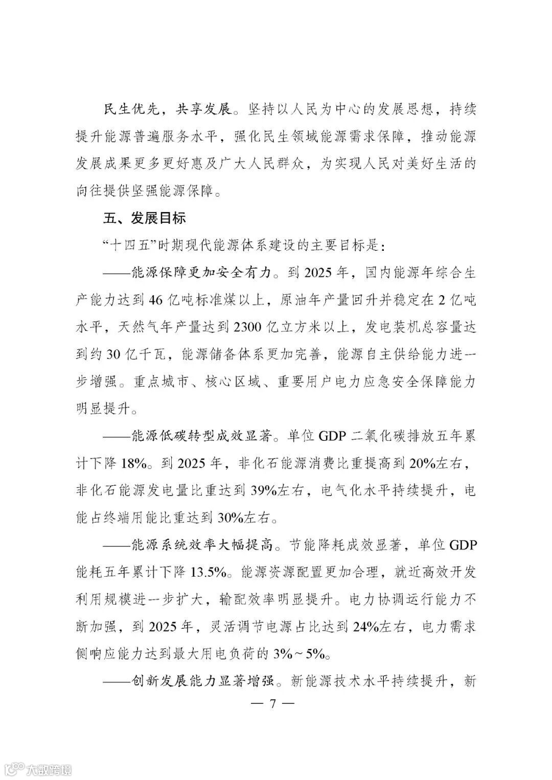 ——能源系统效率大幅提高。节能降耗成效显著,单位GDP能耗五年累计下降13.5%。能源资源配置更加合理,就近高效开发利用规模进一步扩大,输配效率明显提升。电力协调运行能力不断加强,到2025年,灵活调节电源占比达到24%左右,电力需求侧响应能力达到最大用电负荷的3%~5%。
