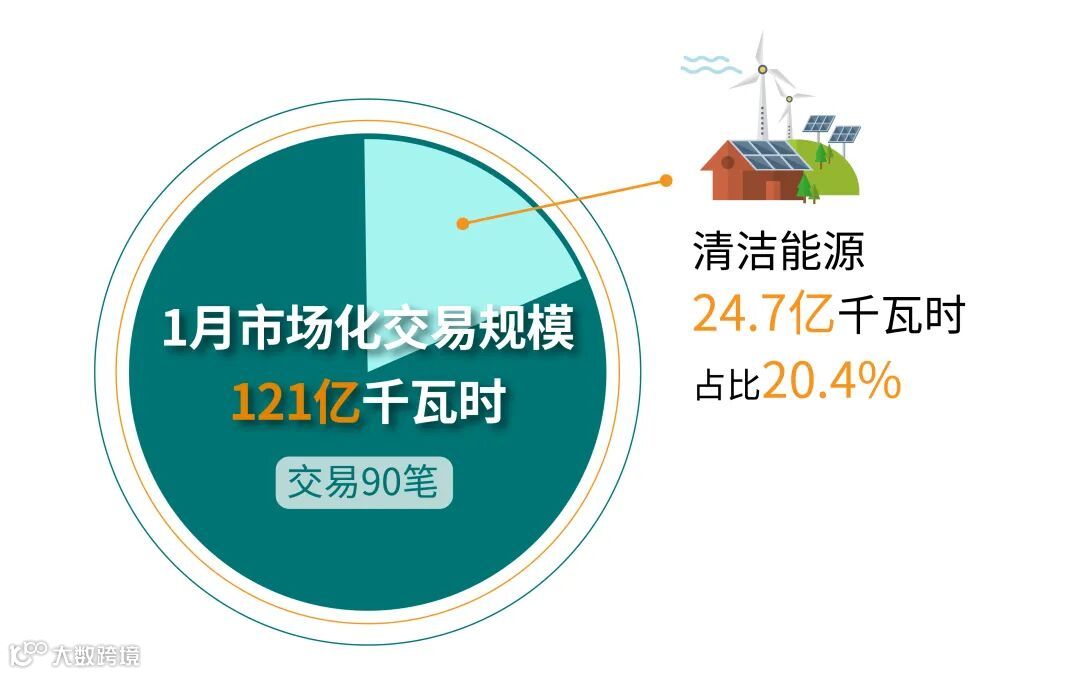 1月,北京电力交易中心在年度交易基础上,开展月度、月内交易90笔,交易规模120.9亿千瓦时,其中清洁能源24.7亿千瓦时,占比20.4%。
