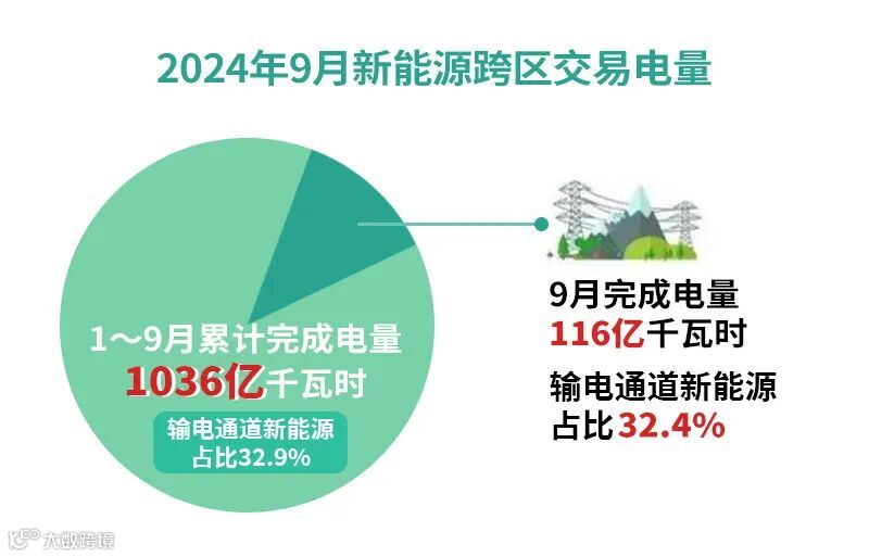 1~9月,通过天中、祁韶、灵绍、鲁固、高岭等跨区通道组织西北、东北地区新能源送华北、华东、华中累计电量1036亿千瓦时,输电通道新能源占比32.9%。