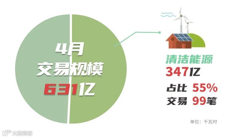 2021年4月,北京电力交易中心在年度交易基础上开展多月、月度和月内交易99笔,交易规模合计631亿千瓦时,其中清洁能源347亿千瓦时,占比55%。