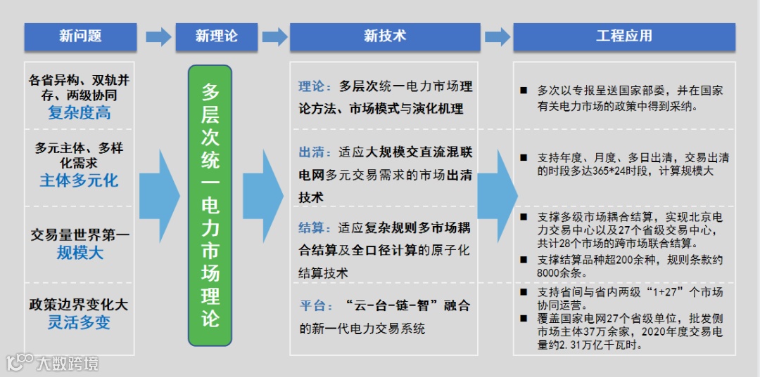 目前,项目的创新成果已用于指导我国多层次统一电力市场建设,成功支撑省间电力市场及27个省级电力市场运营,服务市场主体数量及达成交易电量为世界之最,全面支撑中长期交易“六签”需求和各试点省现货市场试运行,首次开展了考虑环境价值的绿色电力交易,实现北京2022年冬奥全部场馆100%绿电供应,快速支撑电网企业首次代理购电交易,切实保障了中发9号文等政策要求落地。