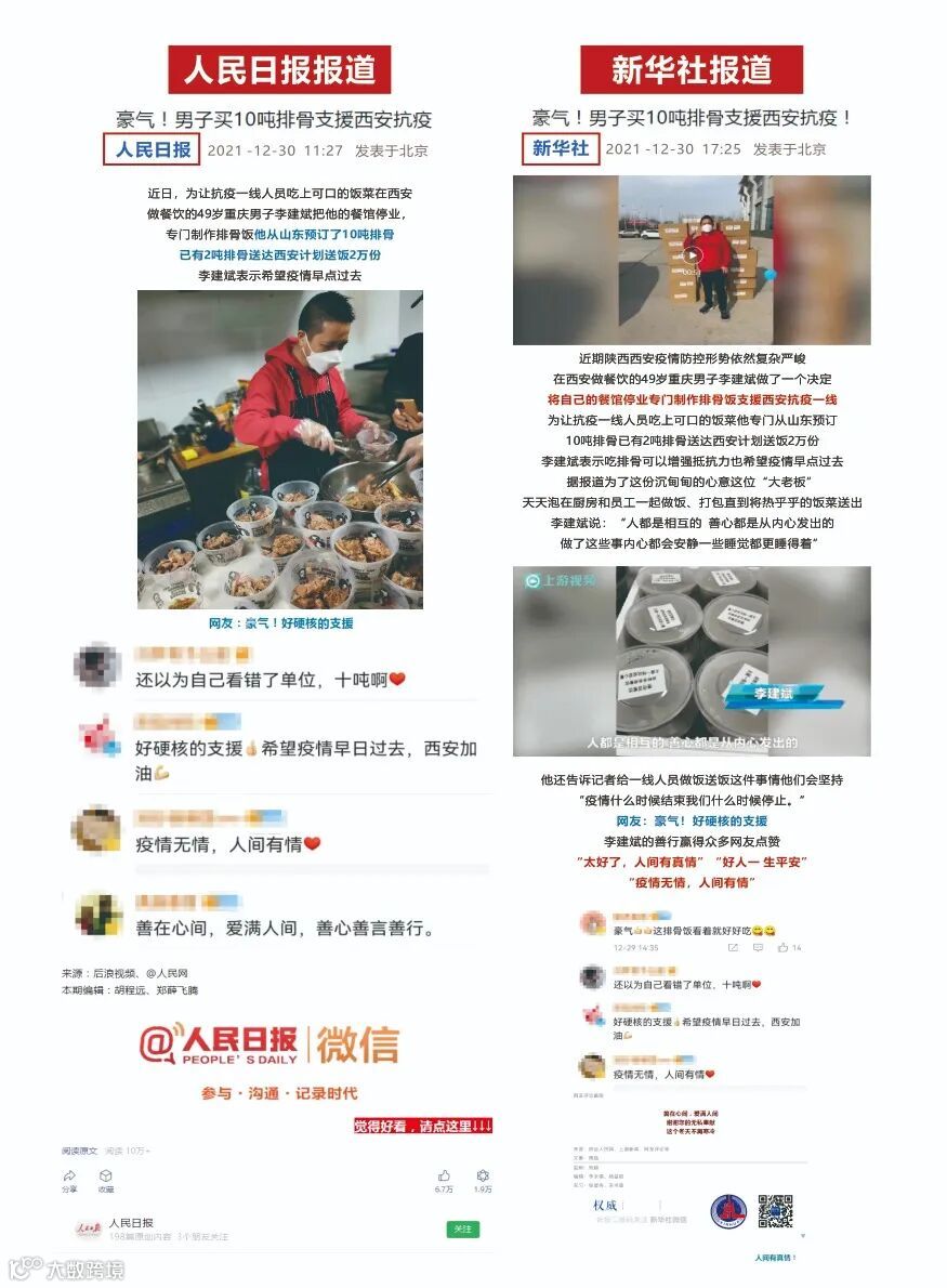 2021年底西安疫情采购10吨排骨制作几万份排骨饭,免费为抗议人员提供爱心餐