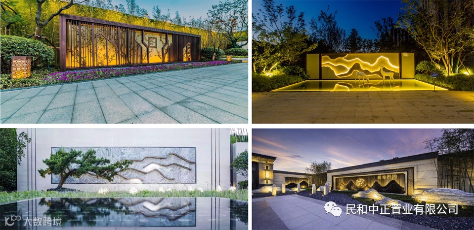 社区内部园林绿化以“生态型”、“园林化”、“公园型”为根本理念,传统唯美的中式园林,小桥流水结合西式园林,主入口处仪式感极强的迎宾中央喷泉,打造立体动态水系景观。人与环境、人与景观的和谐相融,曲径通幽的手法造山造景造林,典雅温婉的休闲廊亭与浓厚中式文化元素的景观照壁交相呼应。
