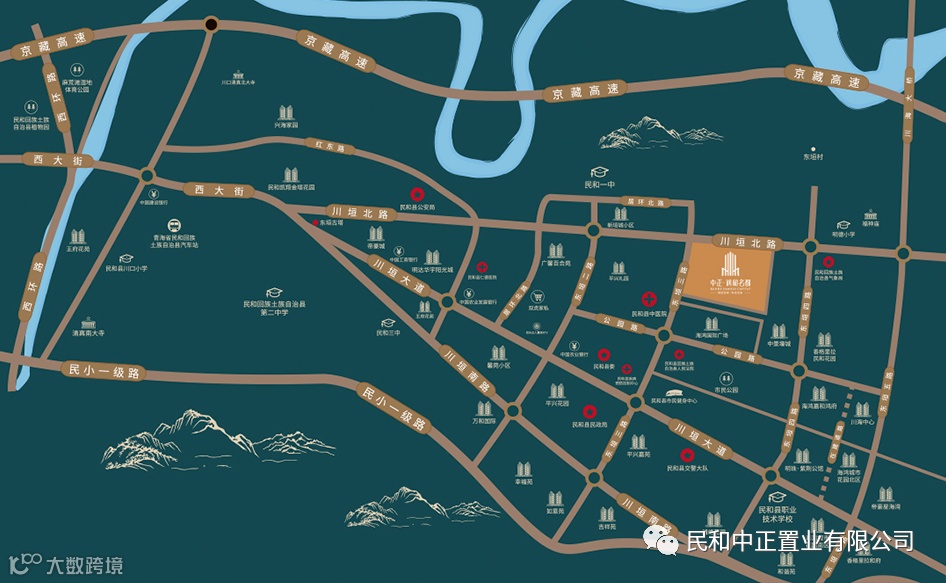 民和一中、民和三中、川垣学校书香蕴藏优质教育资源。民和县中医院、人民医院及时提供重要医疗救治。周边银行金融服务网点、农贸综合市场、生活超市等全方位生活服务配套,构建以项目地为中心的5分钟时尚便捷生活圈。