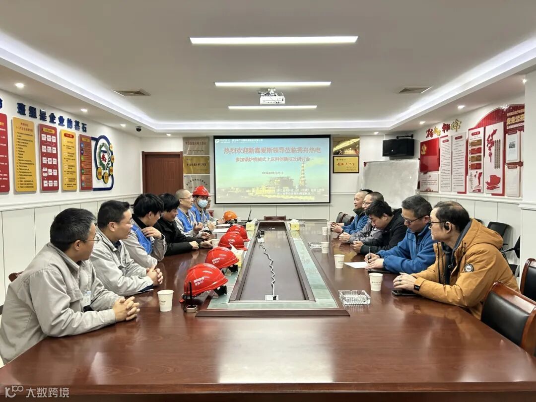 2月27日上午,嘉兴新嘉爱斯热电有限公司一行6名专业技术人员在运行部经理金建荣的带领下,莅临秀舟热电进行技术交流活动,双方就锅炉机械式上床料这一主题开展了一次研讨交流。首善南湖创新智造工作室联盟成员、浙江省技能大师工作室、浙江省高技能人才(劳模)创新工作室领办人李岱携两位“嘉兴良匠”孙强、沈建峰及生技部、安环部共同参与技术交流。