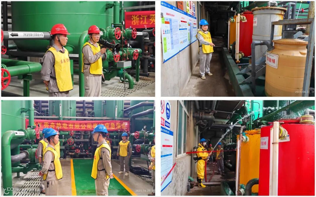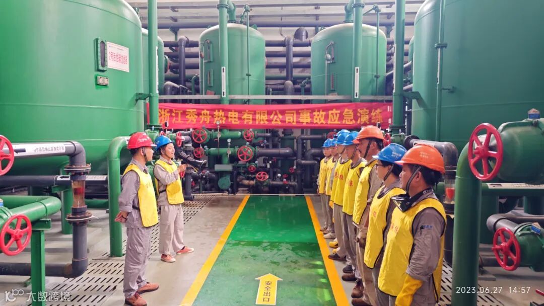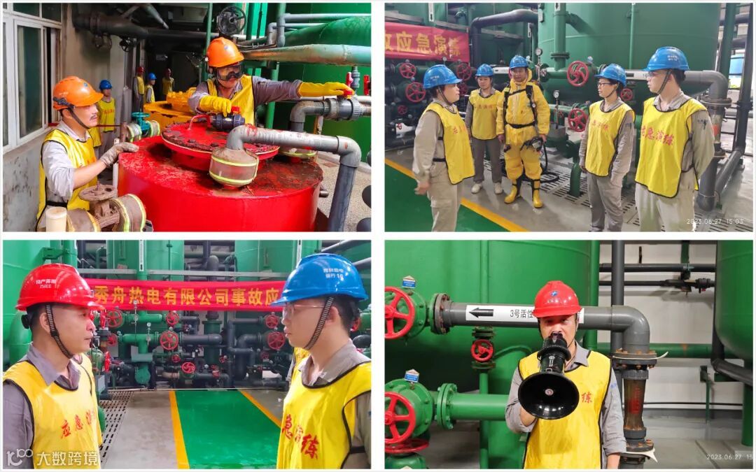 浙江秀舟热电有限公司为进一步加强公司安全生产管理工作,贯彻执行“安全第一、预防为主、综合治理”的安全生产方针,预防和控制环境污染事故的发生和扩散,切实保护公司员工的生命安全,2023年6月27日下午,秀舟热电开展储酸桶进酸阀损坏造成酸满溢环境污染事件应急演练。