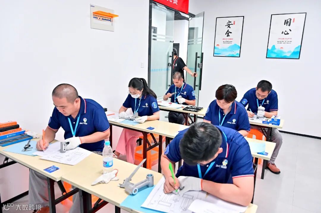 (理论竞赛时选手们沉着冷静,一丝不苟,仔细测绘,认真答题;)