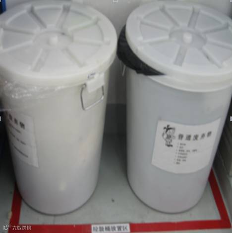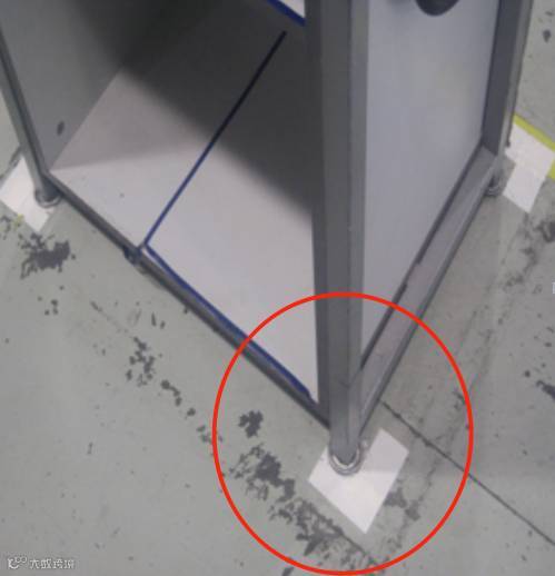 :对于“不良品”,“废弃物” 以及“垃圾”等,使用红色胶带将四周进行标示,并用与胶带一样宽的白色标签标示,注明具体的放置物品。